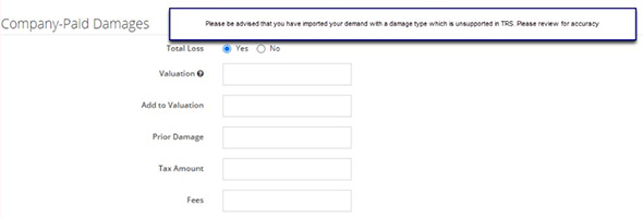With the new functionality, amounts entered in the “Other Amount” field in E-Subro Hub will be listed as “Salvage Expense” once the demand is moved to TRS. If the demand is not a total loss and there is an amount entered in the “Other Amount” field in E-Subro Hub, TRS will continue to convert “Other Amount” to “Personal Property.” A banner will appear on the feature page to advise the member to check their damage types for accuracy.